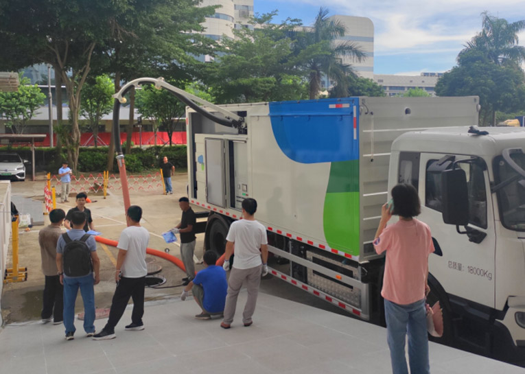 該車選用東風DFH1180EEV純電動底盤,經(jīng)上裝功能設計,具備懸臂伸縮、高壓破碎、強力吸污、渣水分離、固渣打包、液水回收、消毒殺菌等功能。